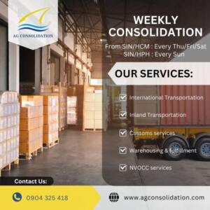 AG Consolidation là công ty logistics hàng đầu chuyên cung cấp dịch vụ gom hàng lẻ (consolidation) từ Singapore về TP. Hồ Chí Minh và Hải Phòng với lịch trình hàng tuần ổn định, giúp tối ưu chi phí và thời gian vận chuyển cho các doanh nghiệp xuất nhập khẩu.